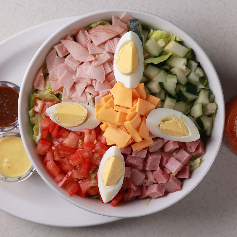 shaved turkey | ham off the bone | fresh-cut iceberg | tomatoes | cucumbers | hard-boiled egg | american | honey mustard